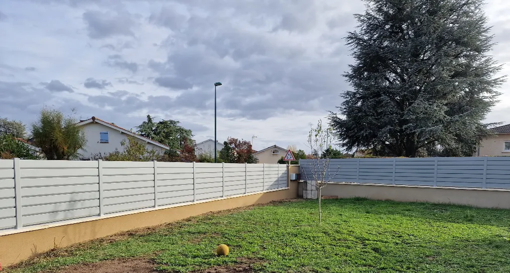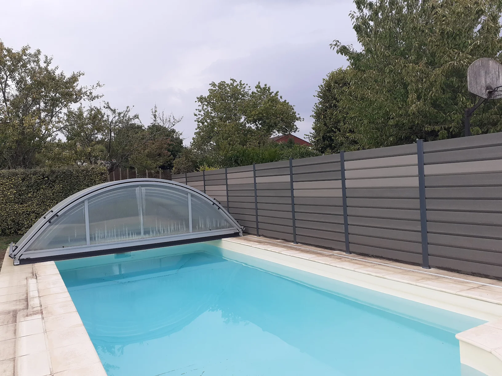 Magnifique installation pour cette clôture PVC persienne en angle. Notre client peut dorénavant profiter de sa piscine en toute intimité !